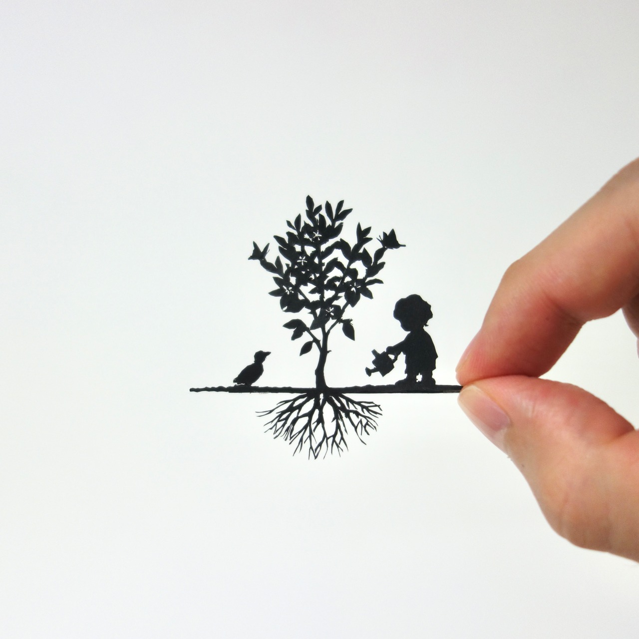 切る紙に下絵を書かずに、ハサミでフリーハンドで切って制作しています。