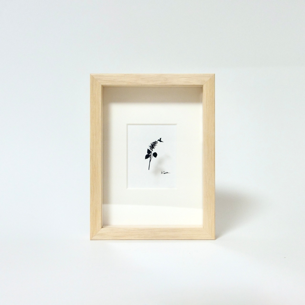 シルエット作品「サルビアの花とハチドリ」の切り絵作品(原画、一点もの)です。